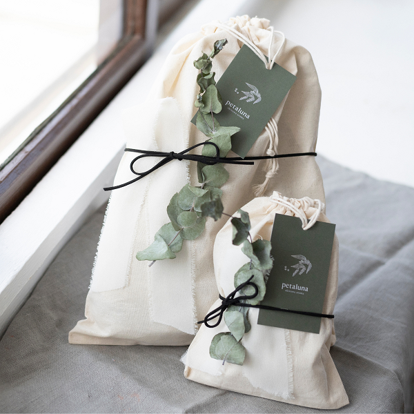 お客様に人気の5種類のアロマソープを集め、ギフト巾着でラッピングしました。香りはロマンチックなフローラル系から爽やかなシトラス系などさまざま。その日の気分で使い分けたり、お試し用にもおすすめです。